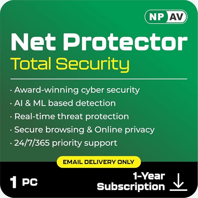 Net Protector Antivirus for PC Total Security 2025, 1 PC, 1 Year (Email Delivery in 1 Hour – No CD)